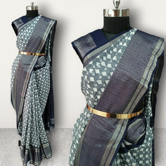 Ikkat Silver Jacquard Border
